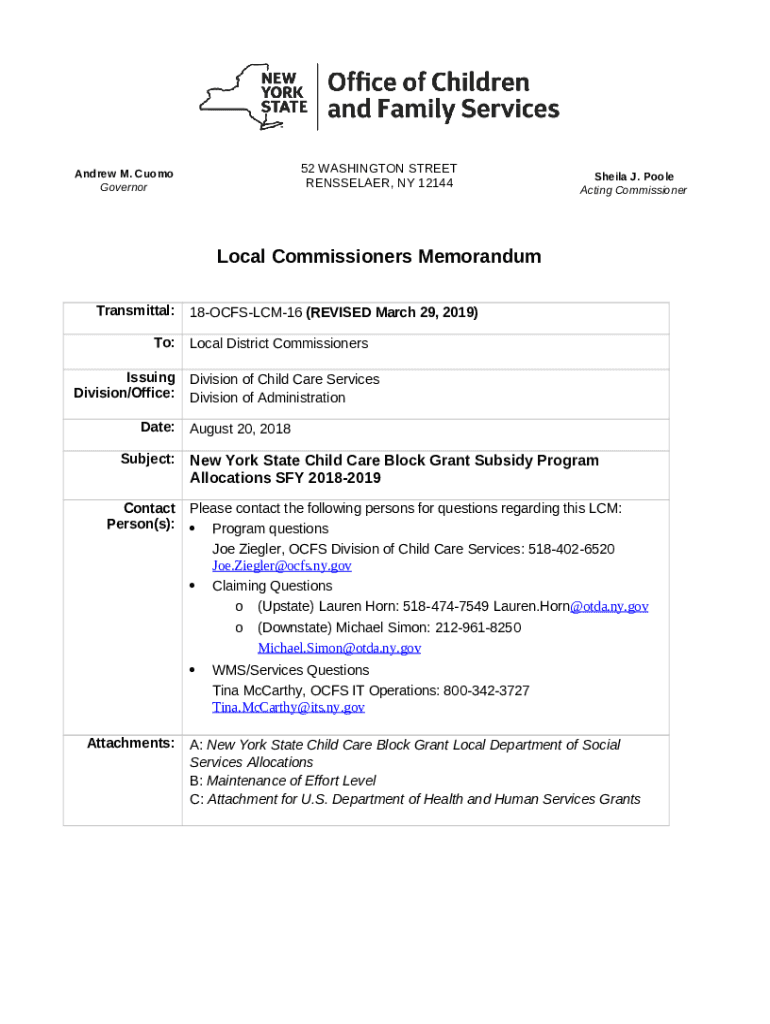 What is New York State Child Care Block Grant Subsidy Program Allocations SFY 2018-2019 - ocfs ny Form?