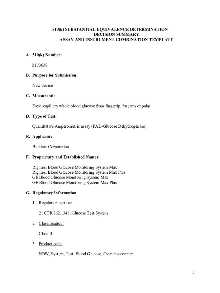 Get the free 510(k) Substantial Equivalence Determination Decision Memorandum Assay and Instrumen...