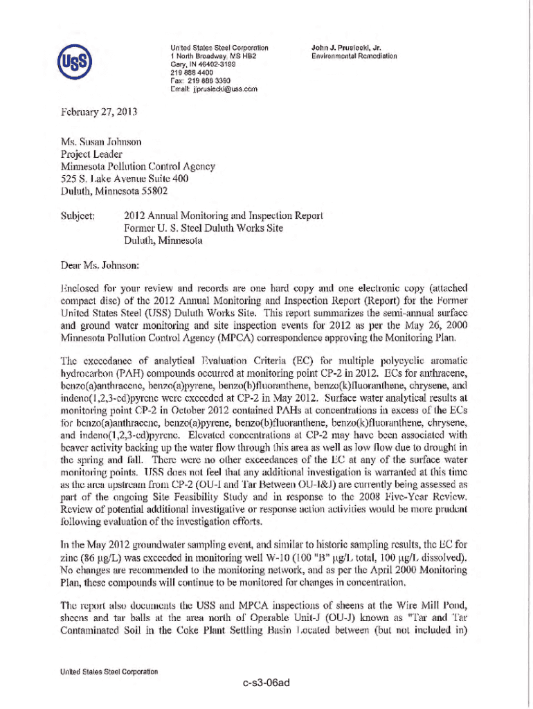 Cs306adcs306ad2012 Annual Monitoring and Inspection Report