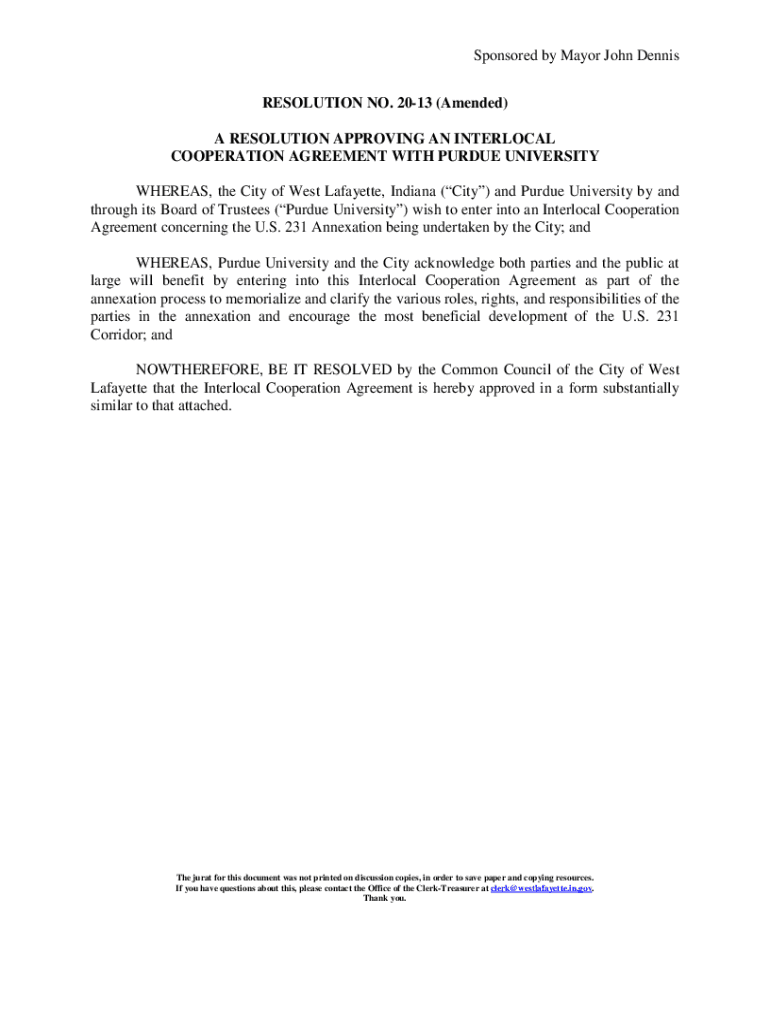 WHEREAS, the City of West Lafayette, Indiana (City) and