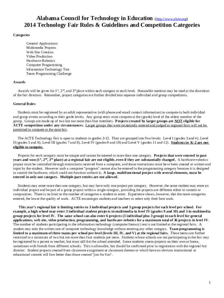 Template 2014 Technology Fair Rules & Guidelines and Competition Categories instructions