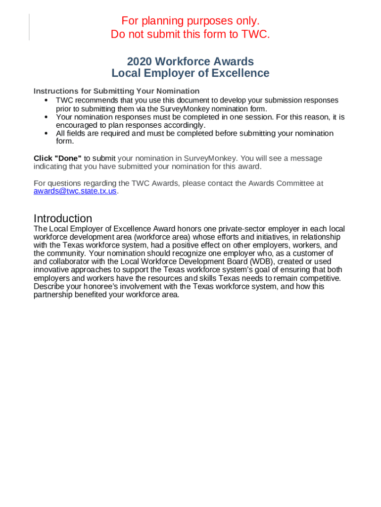 Instructions for the Veteran-Friendly Employer of the Year Award Planning form