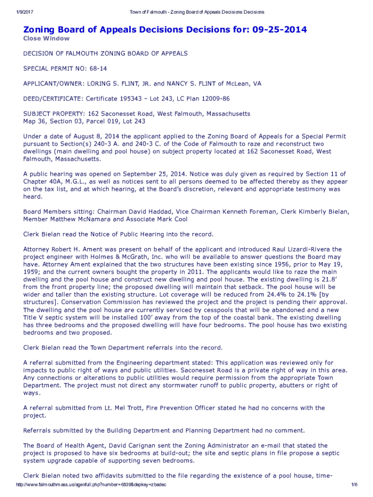 Get the free Zoning Board of Appeals Decisions Decisions for: 09252014