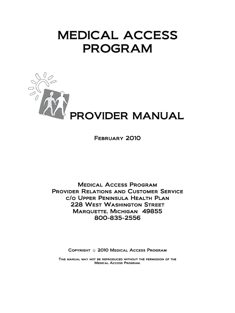 MEDICAL ACCESS PROGRAM PROVIDER MANUAL February 2010 Medical Access Program Provider Relations and Customer Service c/o Upper Peninsula Health Plan 228 West Washington Street Marquette, Michigan 49855