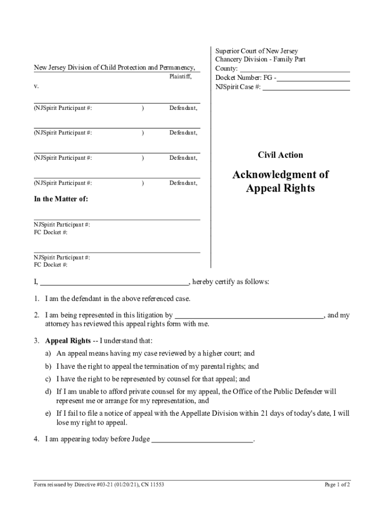 New Jersey Division of Child Protection and Permanency, Plaintiff, v. Superior Court of New Jersey Chancery Division Family Part County: Docket Number: FG Spirit Case #:(Spirit Participant #:)Defendant,