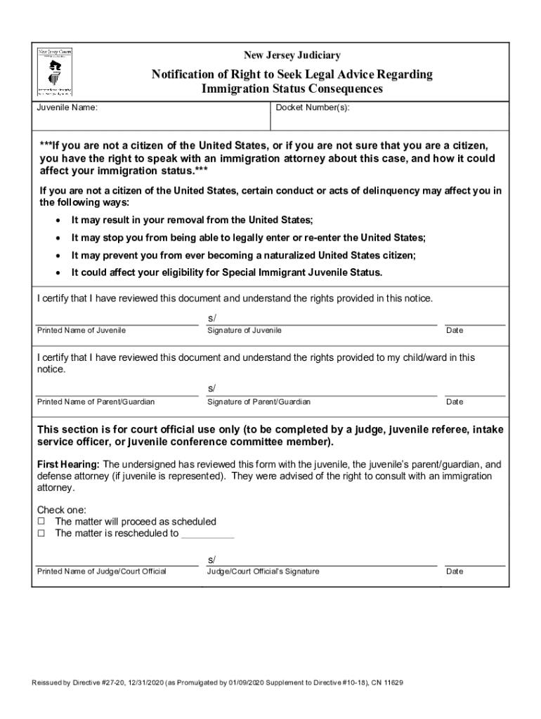 Get the free Notification of Right to Seek Legal Advice ... - NJ Courts