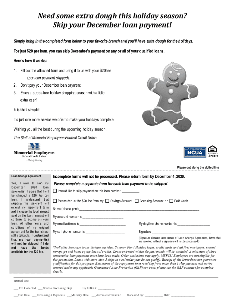 Simply bring in the completed form below to your favorite branch, and you'll have extra dough for the holidays.