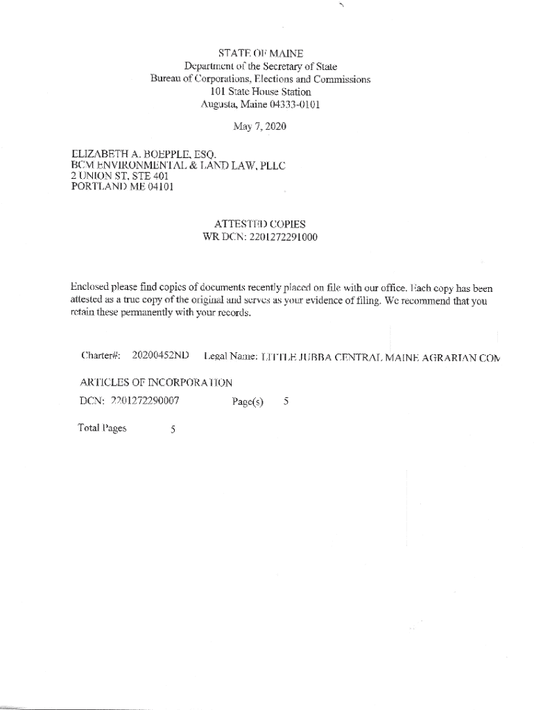 *STATE OF MAINE Department of the Secretary of State Bureau of Corporations, Elections and Commissions 101 State House Station Augusta, Maine 043330101 May 7, 2020, ELIZABETH A. TOPPLE, ESQ. BCM ENVIRONMENTAL