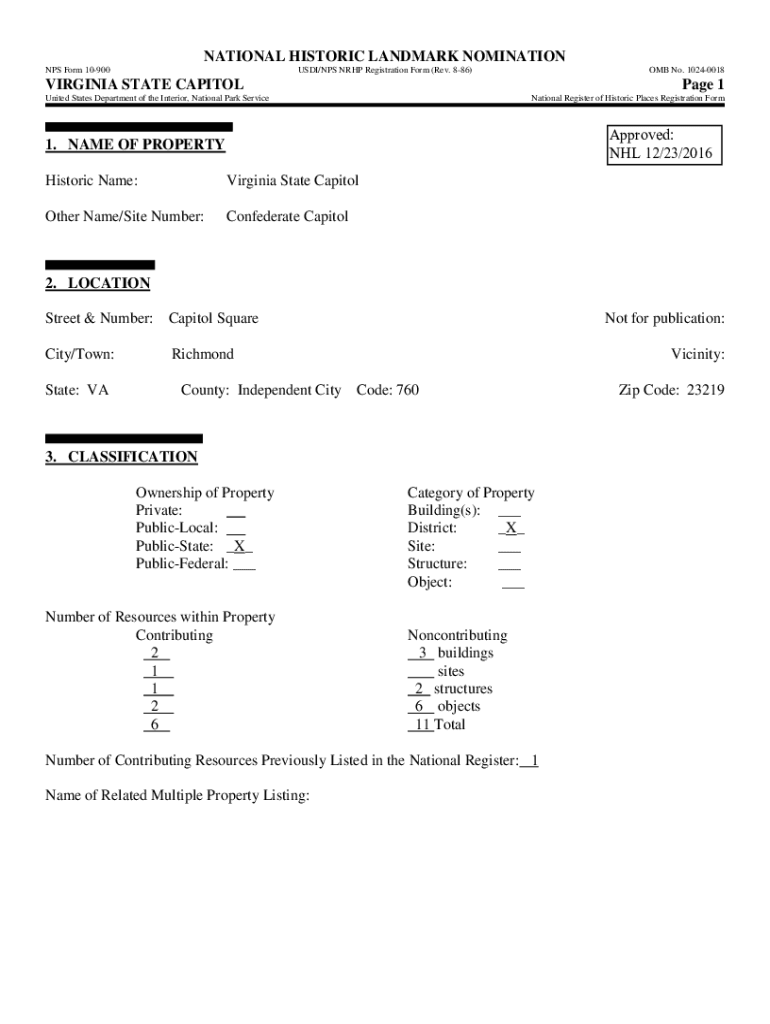 NATIONAL HISTORIC LANDMARK NOMINATION NPS Form 10900USDI/NPS CNRHP Registration Form (Rev. 886)OMB No. 10240018VIRGINIA STATE CAPITOL Page 1United States Department of the Interior, National Park