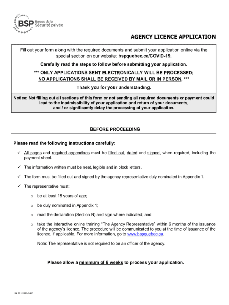 AGENCY License APPLICATION