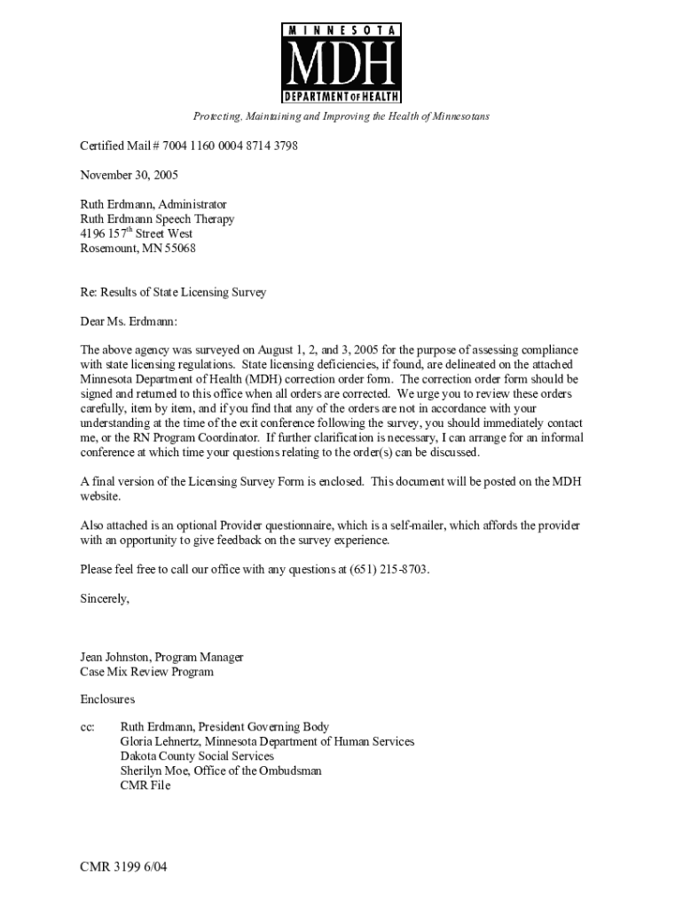 Protecting, Maintaining and Improving the Health of MinnesotansCertified Mail # 7004 1160 0004 8714 3798