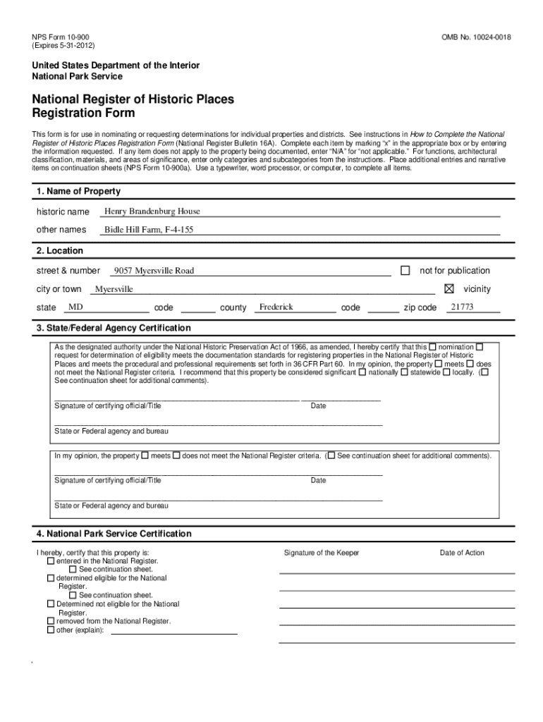 NPS Form 10-900OMB No. is a form used by the National Park Service for the nomination of properties to the National Register of Historic Places.