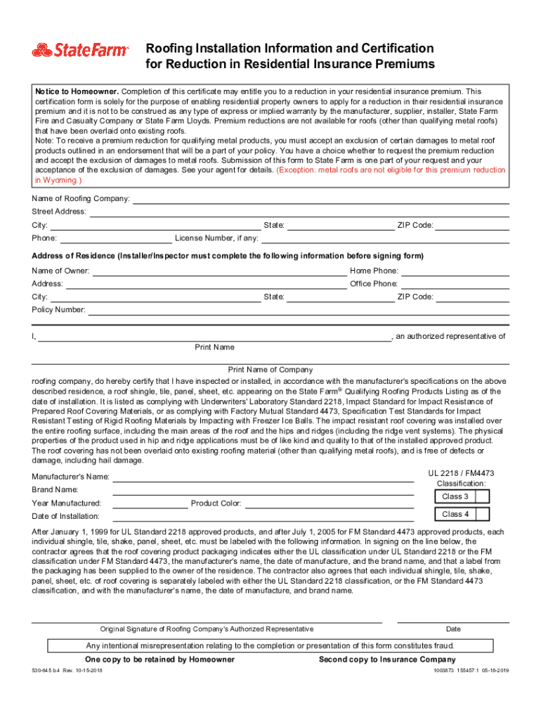 Notice to Homeowner. Completion of this certificate may entitle you to a reduction in your residential