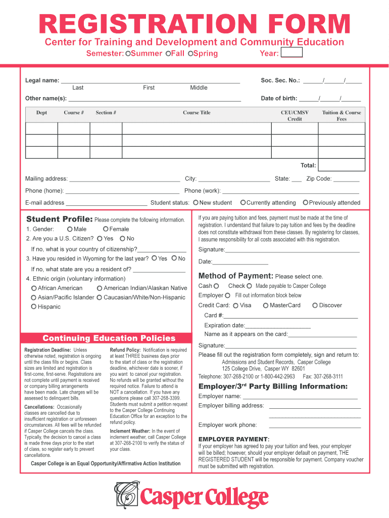 Get the free REGISTRATION FORM - Casper College - caspercollege