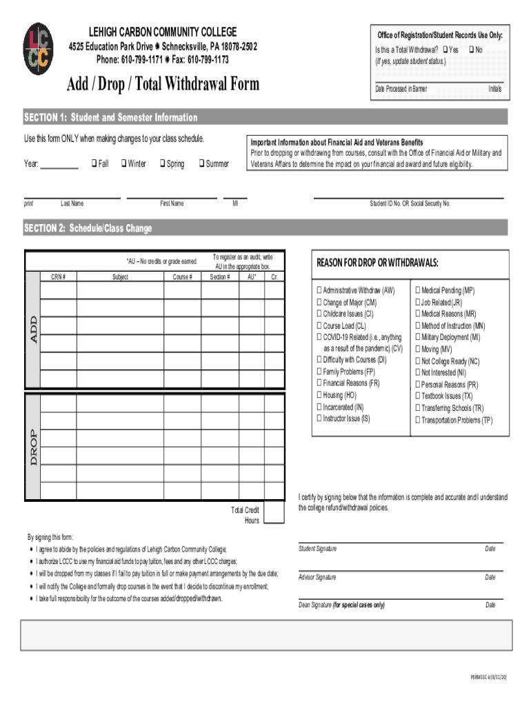To fill out an add drop total withdrawal, students typically need to complete a specific form provided by their institution, indicating the courses from which they wish to withdraw and providing any necessary identification and reasons for withdrawal.