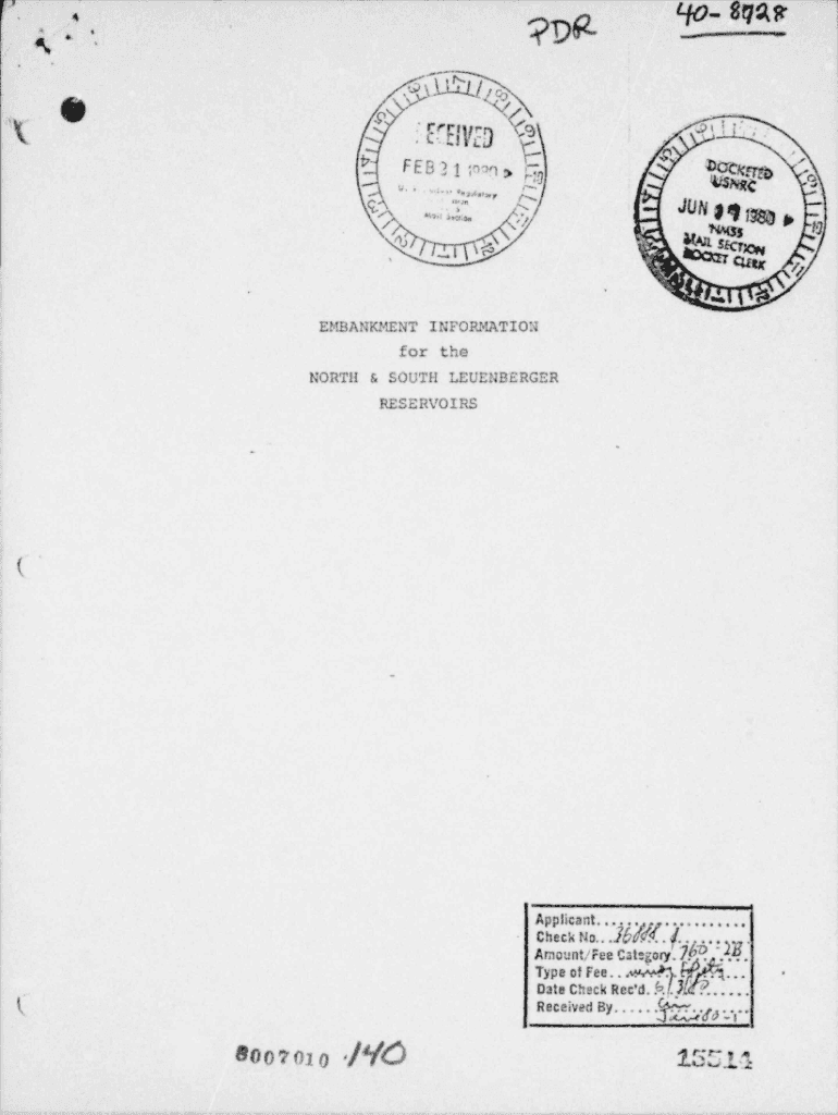 ' '.y4W 857?DP '... N.s, CP, r July .9I D “. 3;u.,.,., i.....?, is, ,, JUN my. 'H 'l05%g,W '/7I pin 'EMBANKMENT INFORMATION for the NORTH & SOUTH FEINBERGER RESERVOIRS. !! . I ! !........... Applicant.