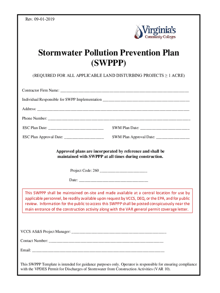 Rev. 09012019Stormwater Pollution Prevention Plan (SW PPP) (REQUIRED FOR ALL APPLICABLE LAND DISTURBING PROJECTS 1 ACRE) Contractor Firm Name: Individual Responsible for SWAP Implementation Address:
