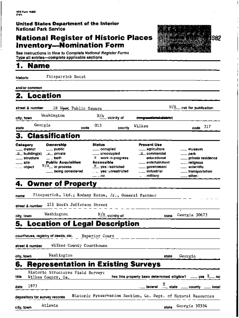 Get the free NPS Form 10-900 (Oct. 1990) United States Department of ...
