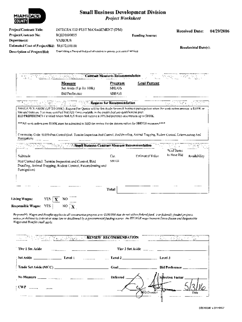 Estimated Cost project/Bid:INTEGRATED PEST MANAGEMENT (IPM)