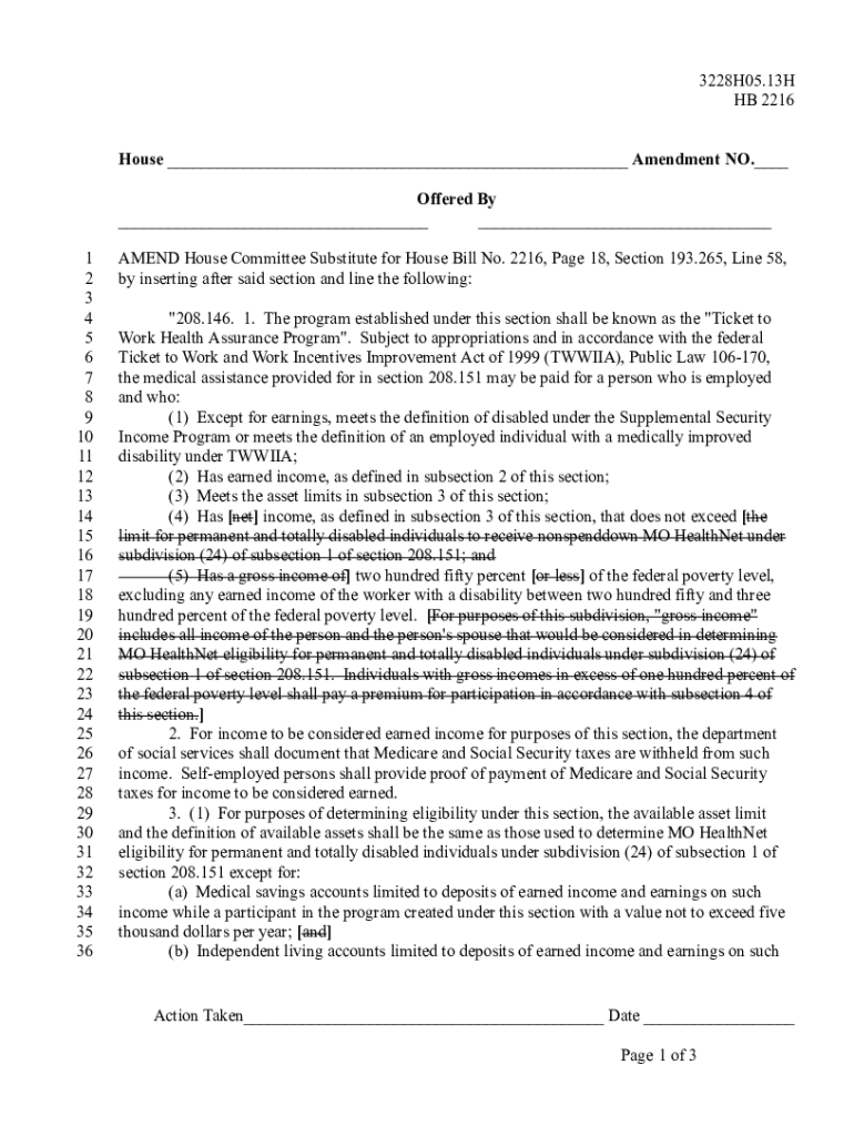 Get the free 3228H05.13H HB 2216 House Amendment NO. Offered By - house mo