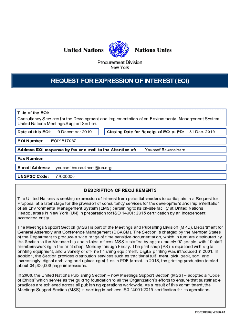 Get the free The United Nations is seeking expression of interest from potential vendors to parti...