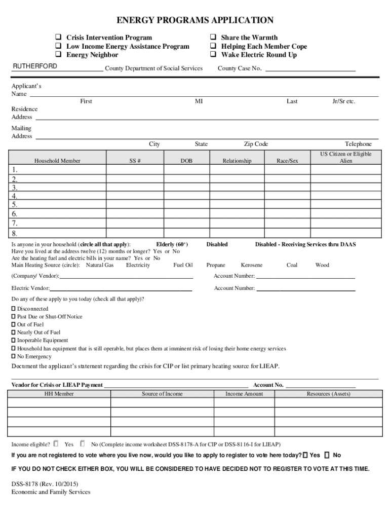 ENERGY PROGRAMS APPLICATION Crisis Intervention Program Low Income Energy Assistance Program Energy Neighbor RUTHERFORD Share the Warmth Helping Each Member Cope Wake Electric Round Up County Case