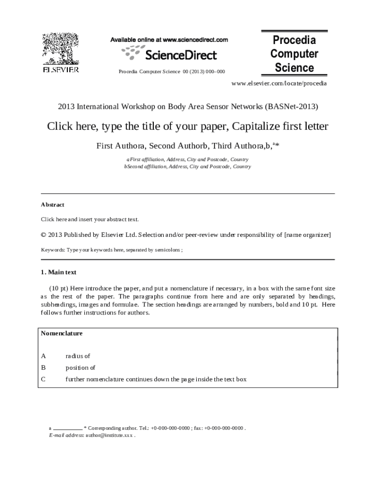 Instructions for the form Role of Body Area Sensor Networks in Smart Health Care - web cs dal