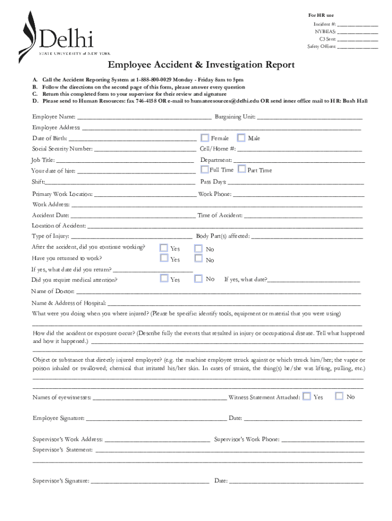 Gather all necessary information: You will need details about the accident, such as date, time, location, and any witnesses. Additionally, collect information about the employee involved, their role, and any previous accidents or incidents.