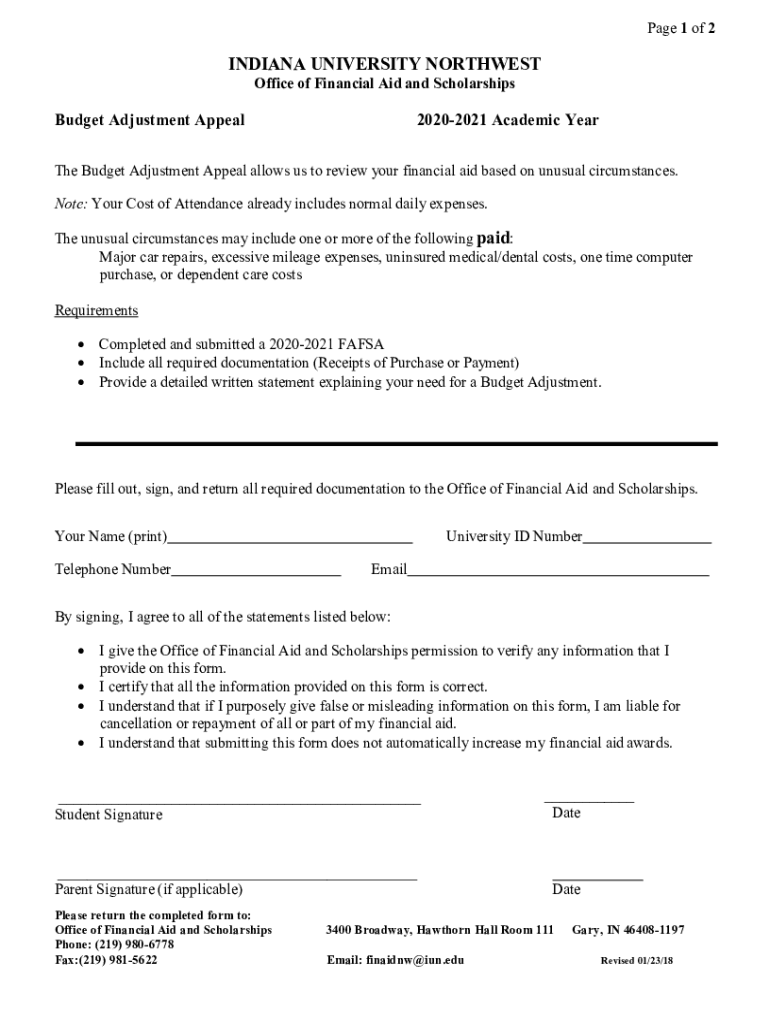 Office of Financial Aid and ScholarshipsBudget Adjustment Appeal20202021 Academic Earth Budget Adjustment Appeal allows us to review your financial aid based