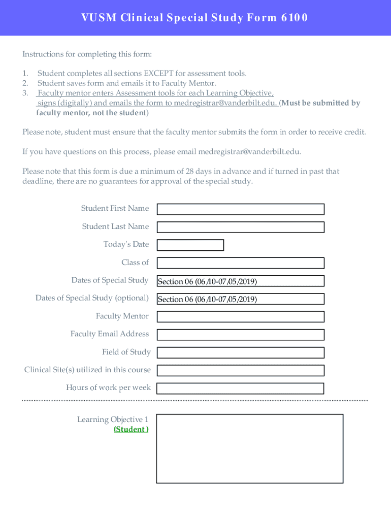 Get the free VUSM Clinical Special Study Form 6100 - Vanderbilt School ... - medschool vanderbilt