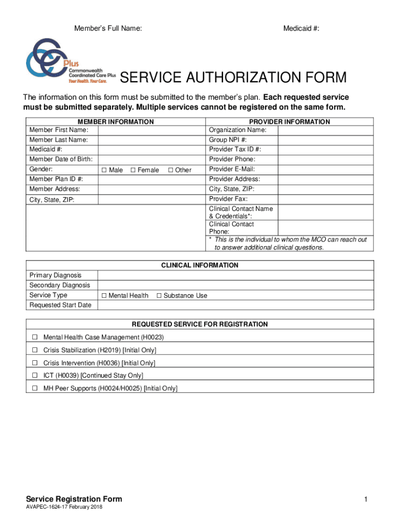 Members Full Name:Medicaid #:SERVICE AUTHORIZATION FORM