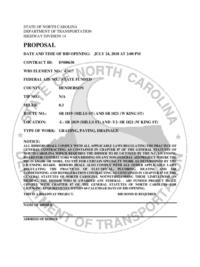 DATE AND TIME OF BID OPENING: JULY 24, 2018, AT 2:00 PM