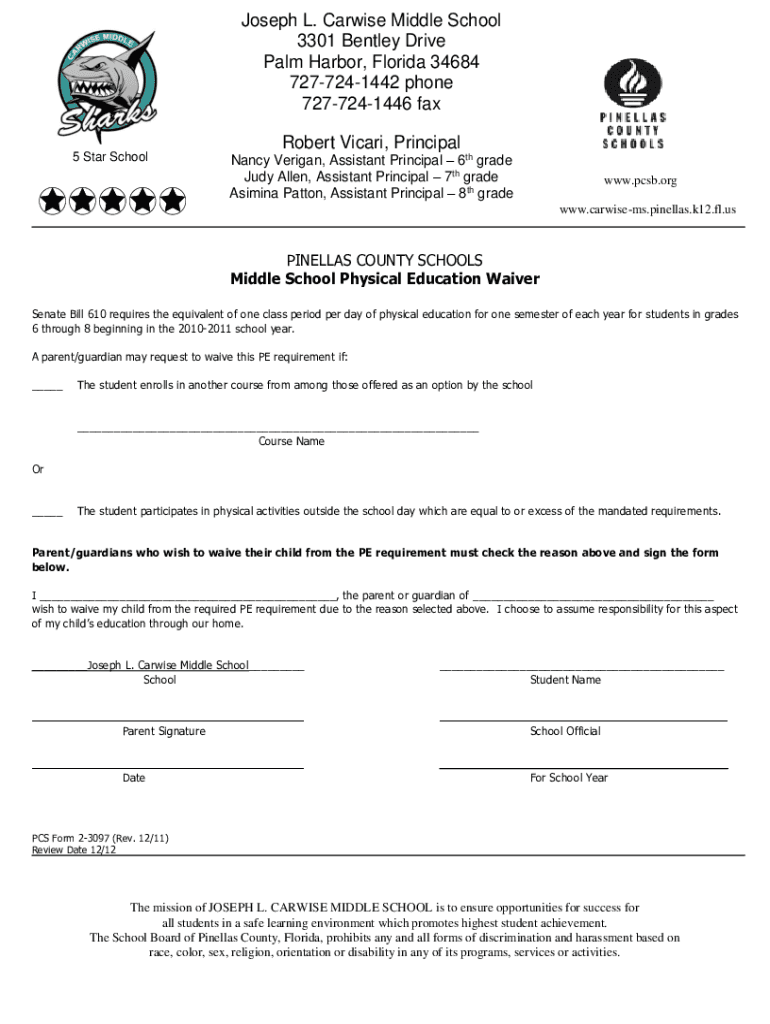 Get the free joseph l carwise middle school