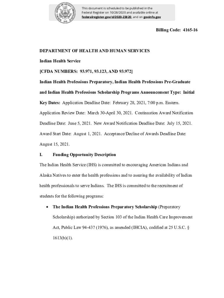 This document is scheduled to be published in the Federal Register on 10/28/2020 and available online at federalregister.gov/d/202023820, and on gov info. Billing Code: 416516DEPARTMENT OF HEALTH