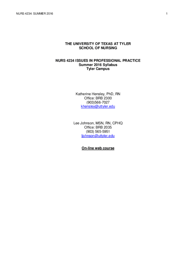Get the free NURS 4234 - Issues in Professional Practice - The University ...