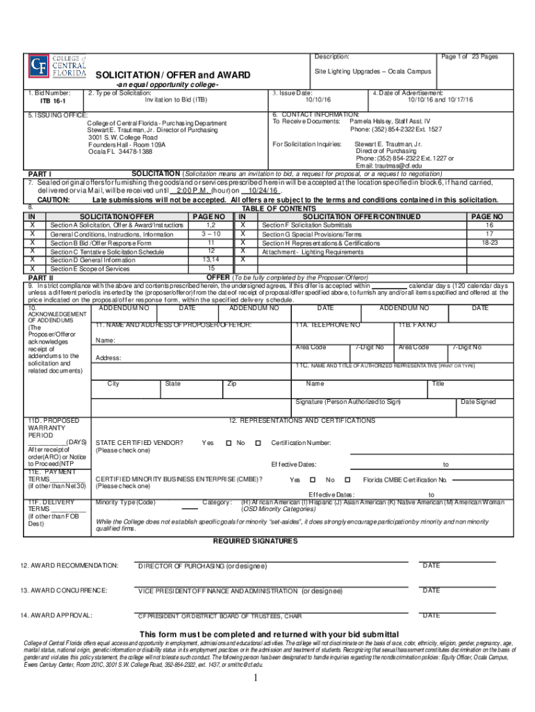 Get the free SOLICITATION / OFFER and A WARD -an equal opportunity college- - pr cf