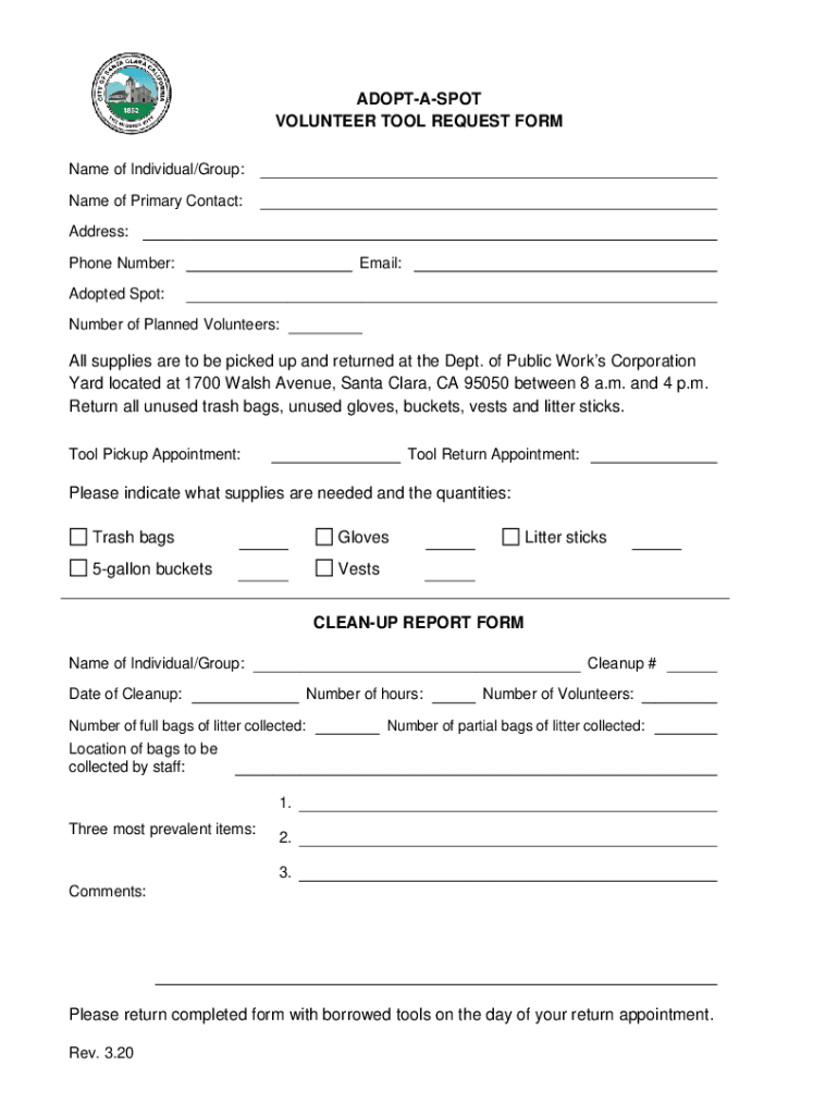 Get the free ADOPT-A-SPOT VOLUNTEER TOOL REQUEST FORM All supplies ...