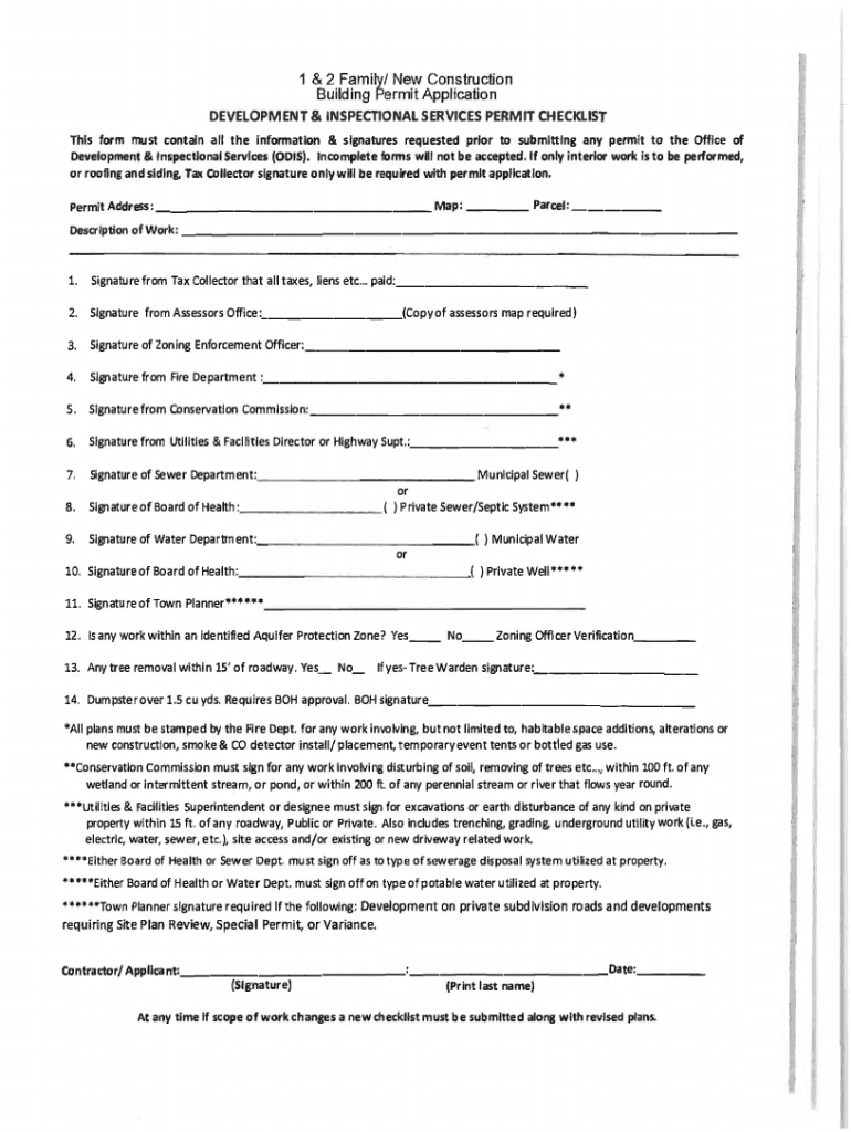 1 & 2 Family/ New Construction Building Permit ApplicationDEVELOPMENT & INSPECTION AL SERVICES PERMIT CHECKLIST This form must contain all the information & signatures requested prior to submitting