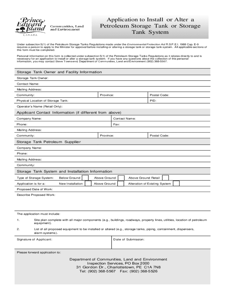 Get the free PDF Install or Alter a Petroleum Storage Tank or Storage Tank System ...