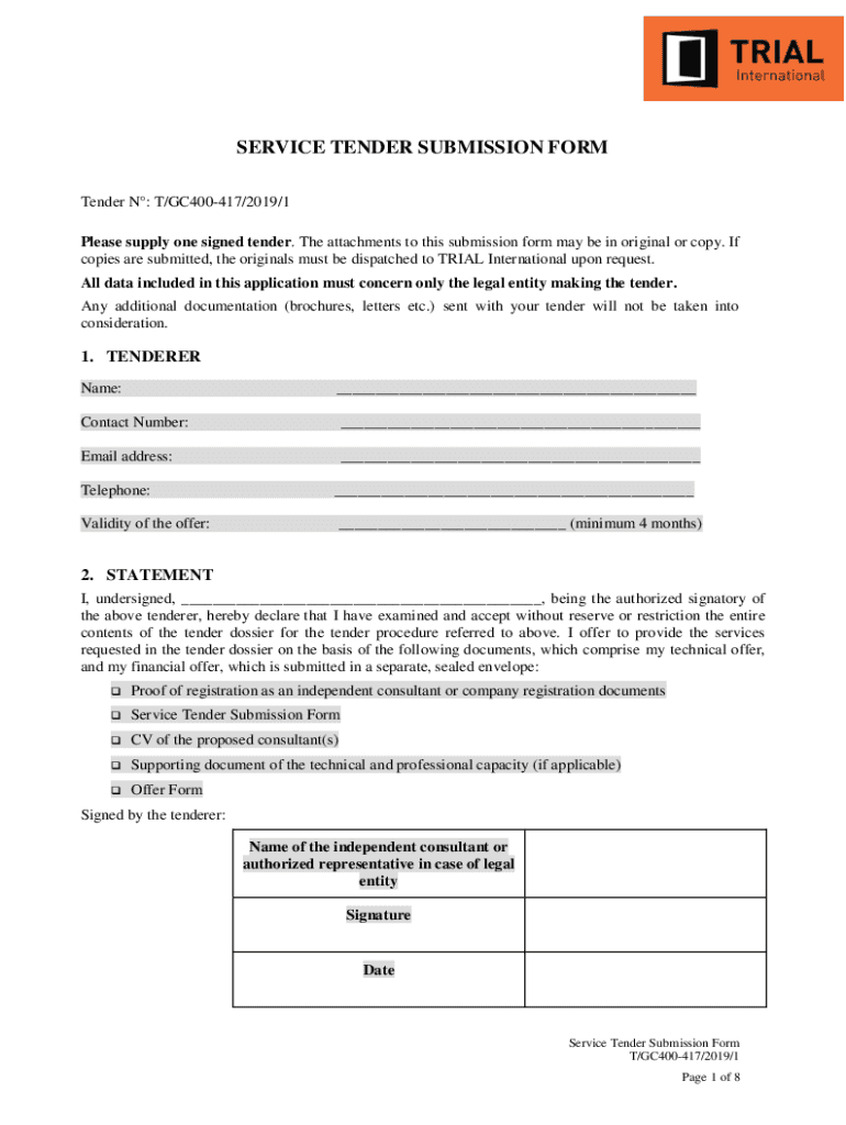Get the free SERVICE TENDER SUBMISSION FORM - TRIAL International