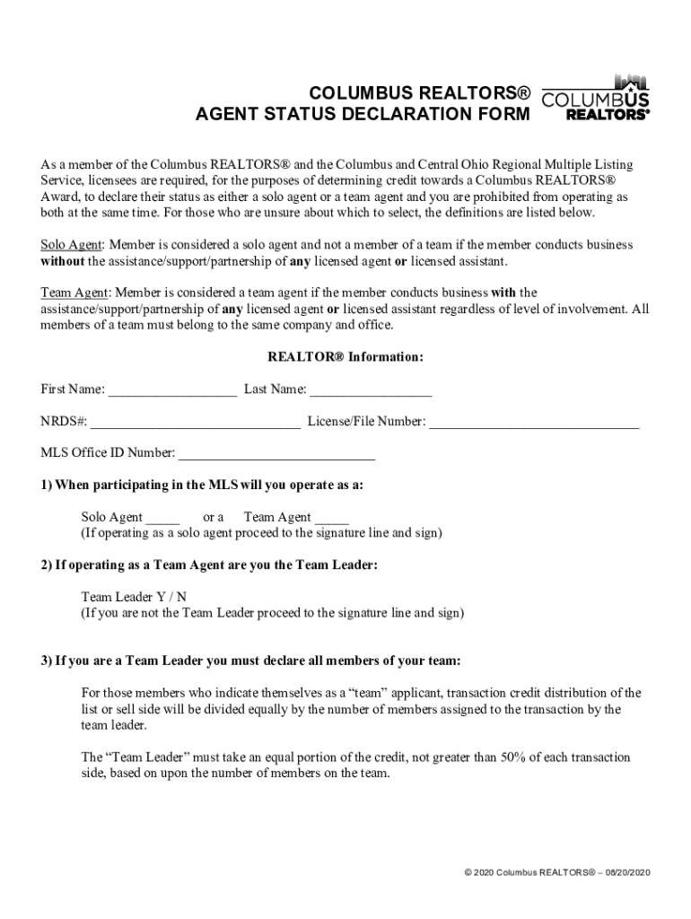 Get the free AgentDeclarationForm08202020.doc