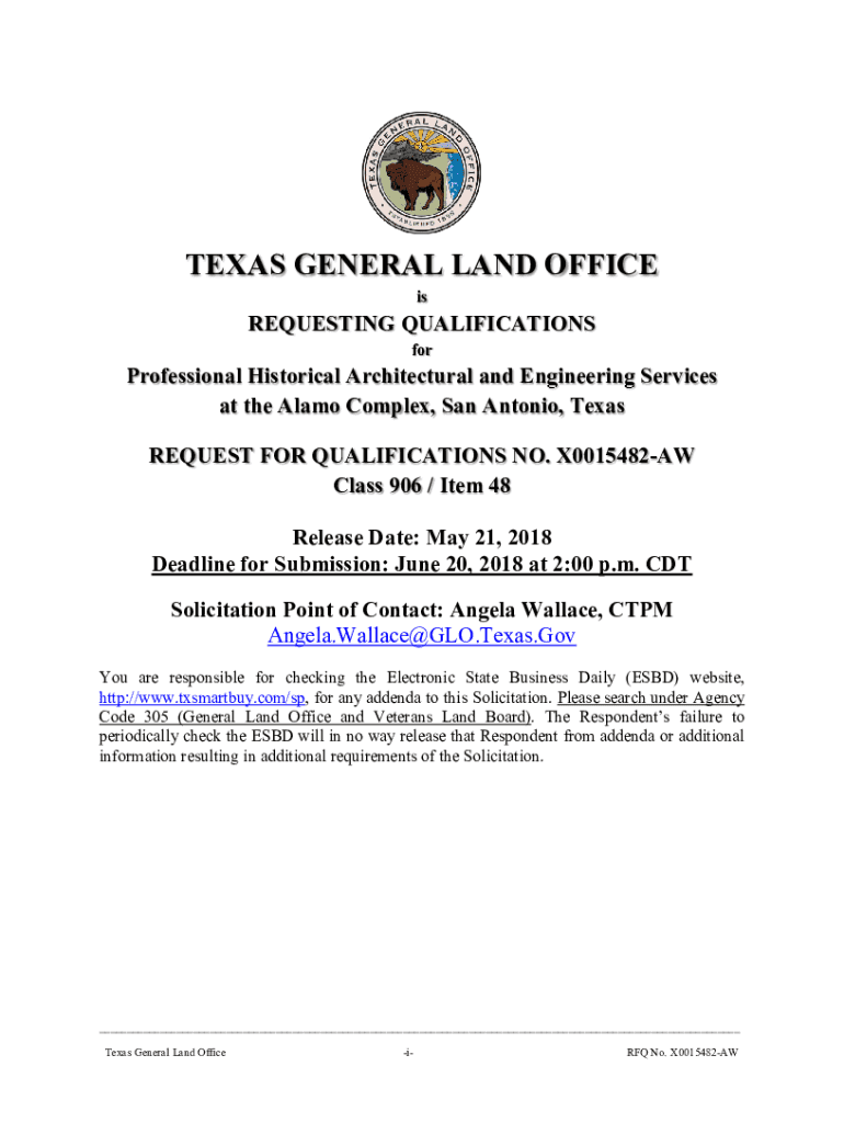 REQUEST FOR QUALIFICATIONS NO. X0015482AW