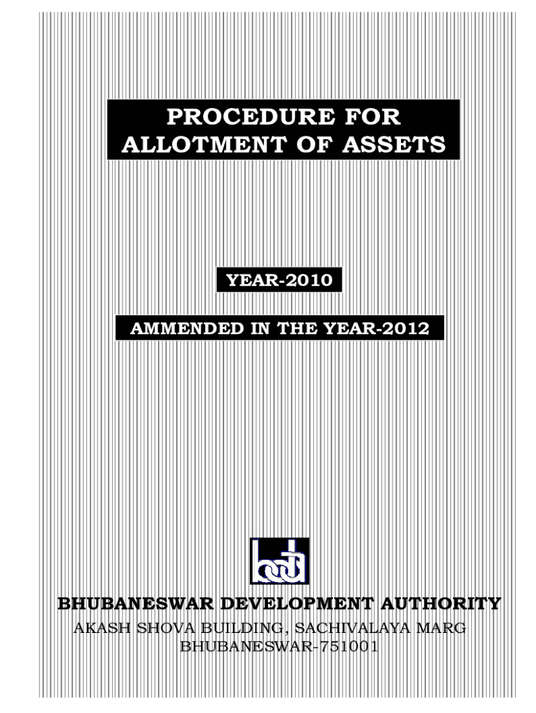 BHUBANESWAR751001PROCEDURE FOR ALLOTMENT OF ASSETCONTENTS