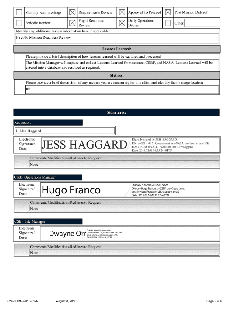 Individuals or organizations participating in NASA-supported balloon missions are required to file the NASA Balloon Program Annex.