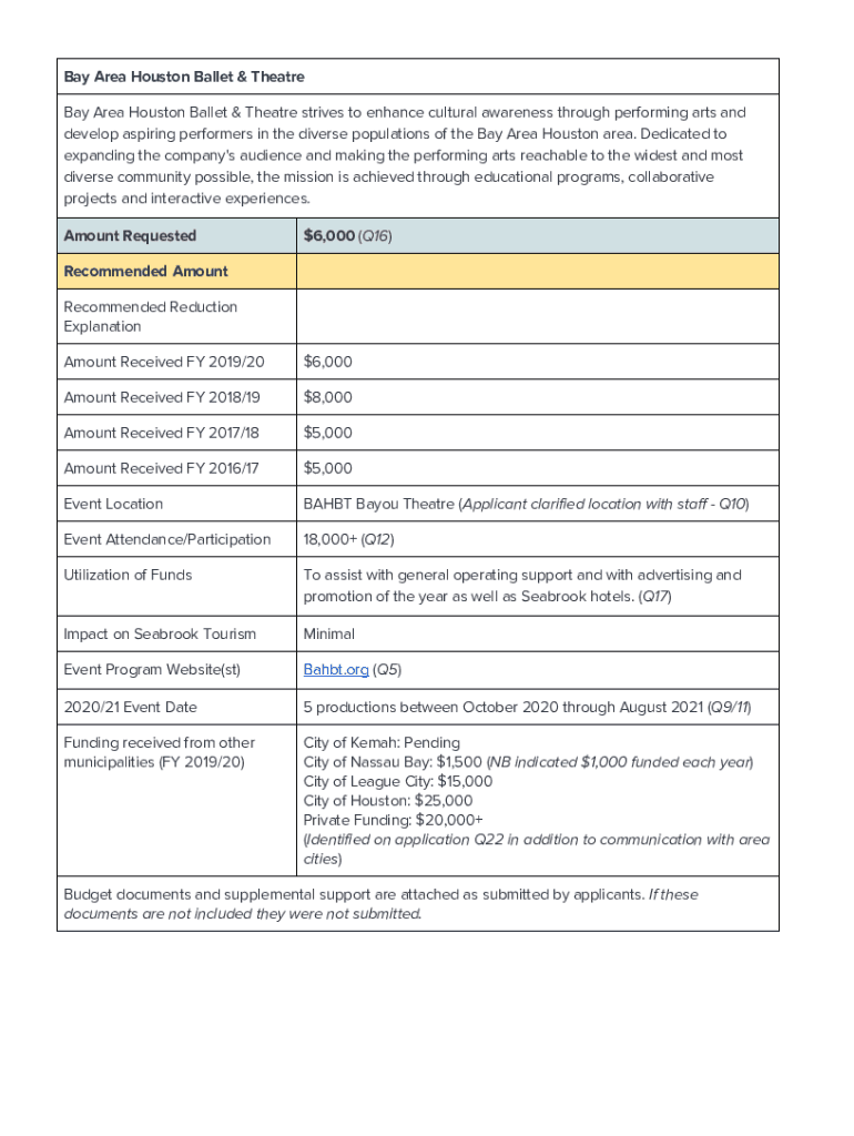 Fill out your bay area houston ballet online with pdfFiller!