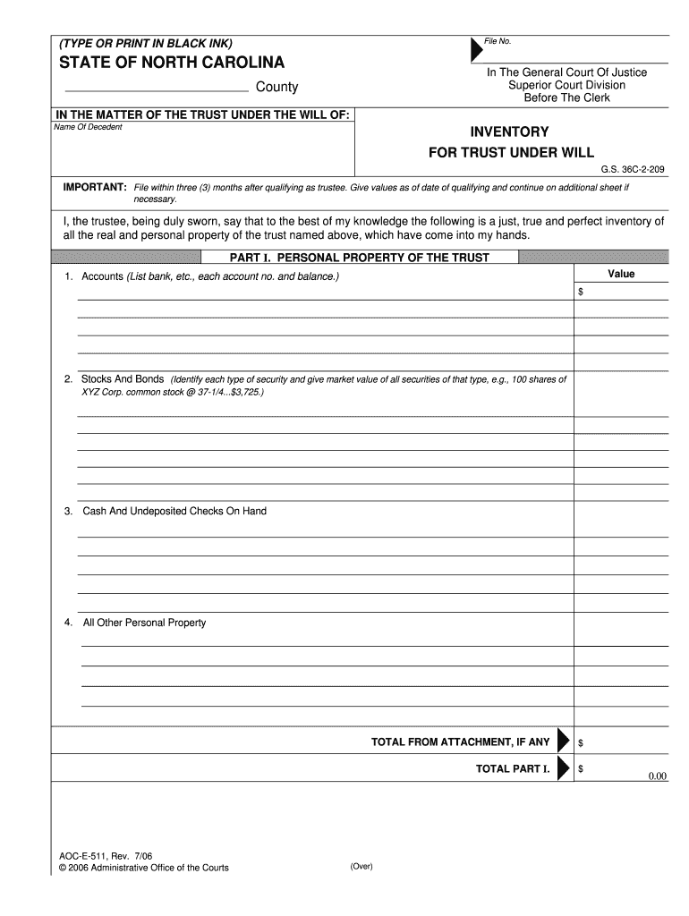 What is the North Carolina Trust Inventory Form?