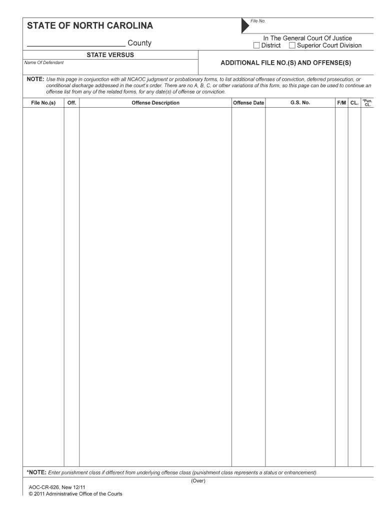What is the North Carolina Additional Offense Form (AOC-CR-626)?