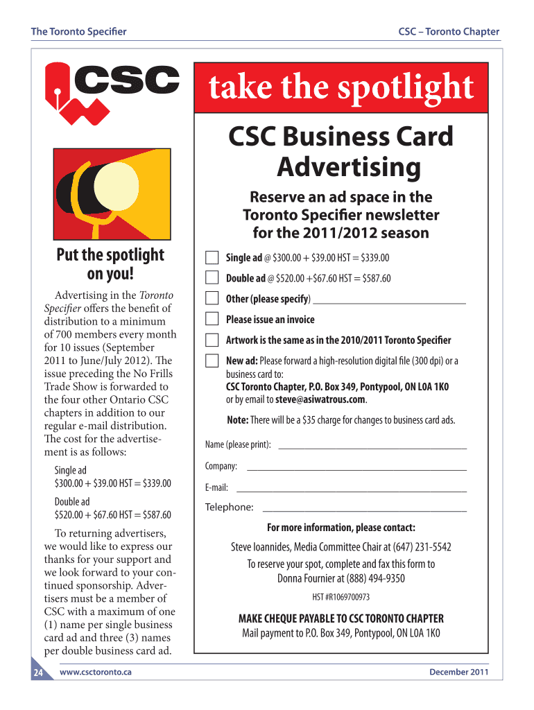 Get the free December 2011 Specifier final.indd - CSC Toronto Chapter
