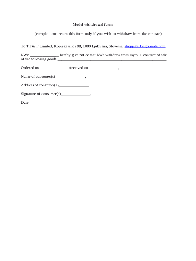 What is Right of withdrawal for consumers and model withdrawal ... Form?