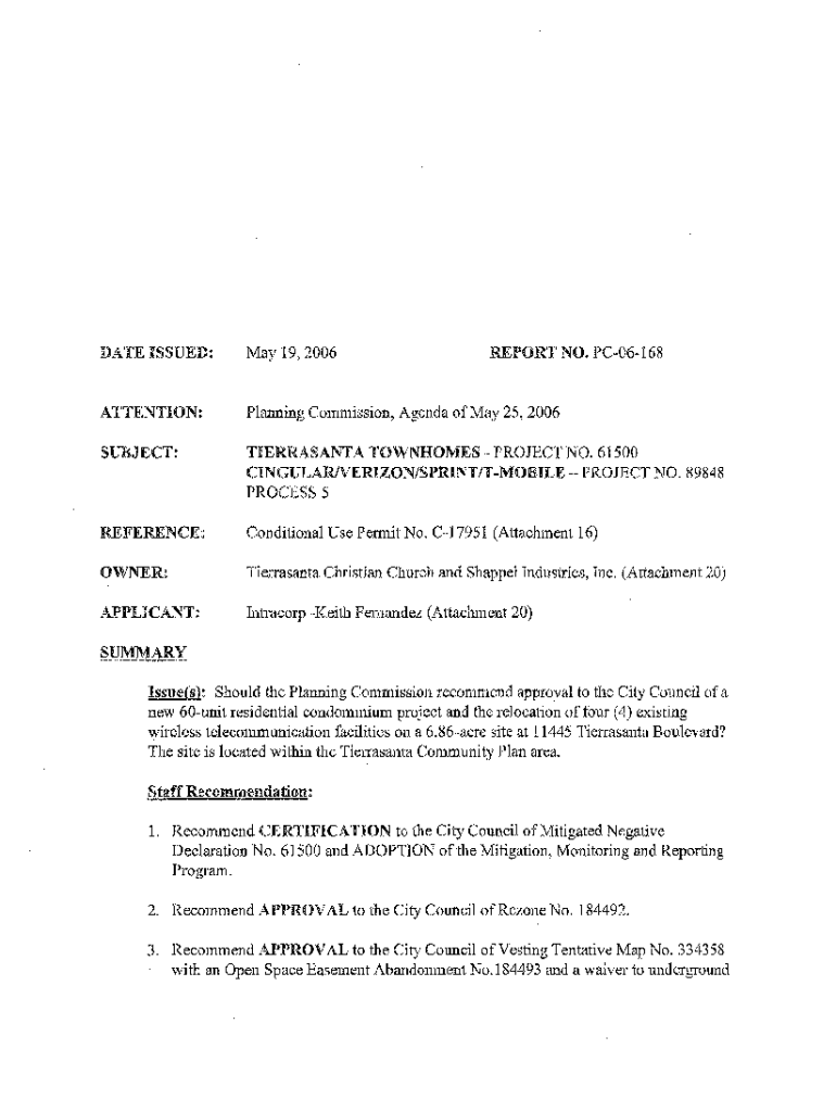DATE ISSUED:May 19,2006REPORT NO. PC06168ATTENTION:Planning Commission, Agenda of May 25,2006SUBJECT:TIERRASANTA TOWNHOUSES PROJECT NO. 61500 CINGULARIVERIZON/SPRINT/MOBILE PROJECT NO. 89848 PROCESS